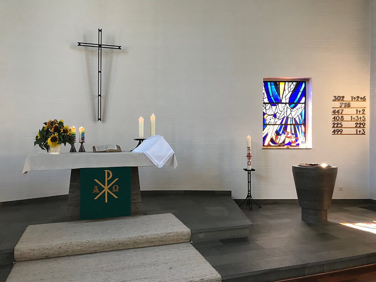 Gemeinsames Singen und Beten tun gut. Machen Sie mit. Die Lieder und Psalmgebete finden Sie im Gesangbuch; die Nummern sind an den Wandtafeln angeschlagen. Das Vaterunser und das Glaubensbekenntnis stehen hinten im Klappentext des Gesangbuchs. Für den Ablauf des Gottesdienstes gibt es kleine Hefte am Eingang.